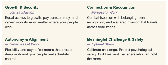 -The Paradox Organizational Drivers™ — the four evidence-based dimensions every remote wellbeing program needs. -A remote-specific breakdown of the five challenges traditional programs miss -Real benchmarks from Reddit, Atlassian, Asana, Pinterest, Monzo Bank, and Brightside — what they do, and what it costs -A 12-month, four-phase implementation roadmap — from diagnosis to evaluation -16 KPIs to measure the outcomes that actually matter (loneliness, pay equity, meeting load, psychological safety) -Next-step checklist you can walk into a leadership meeting with